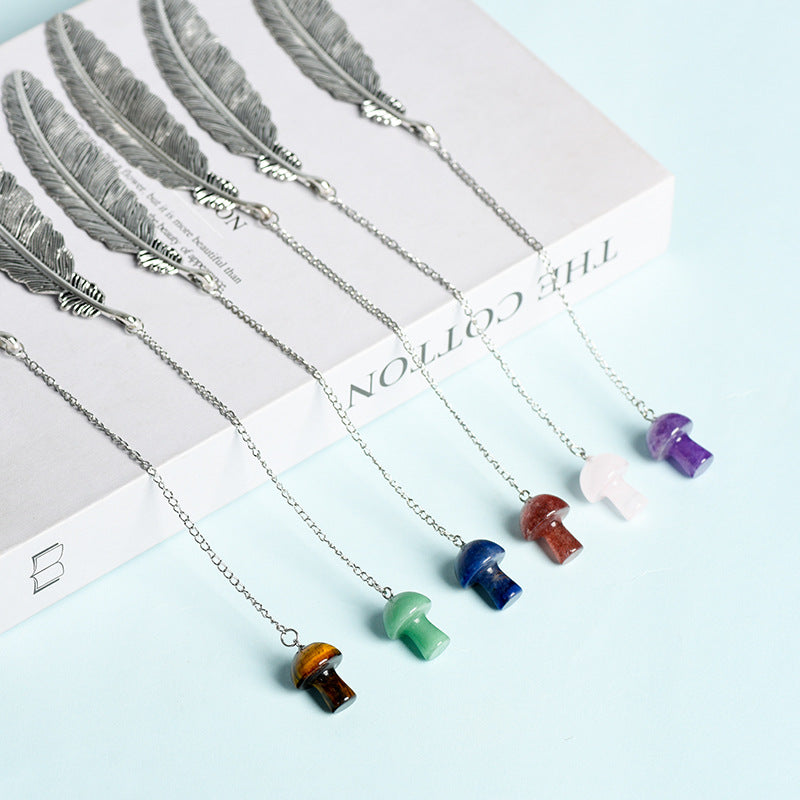 Natural crystal mushroom pendant bookmark raw stone amethyst cluster bookmark pendant creative classmate gift $2.00