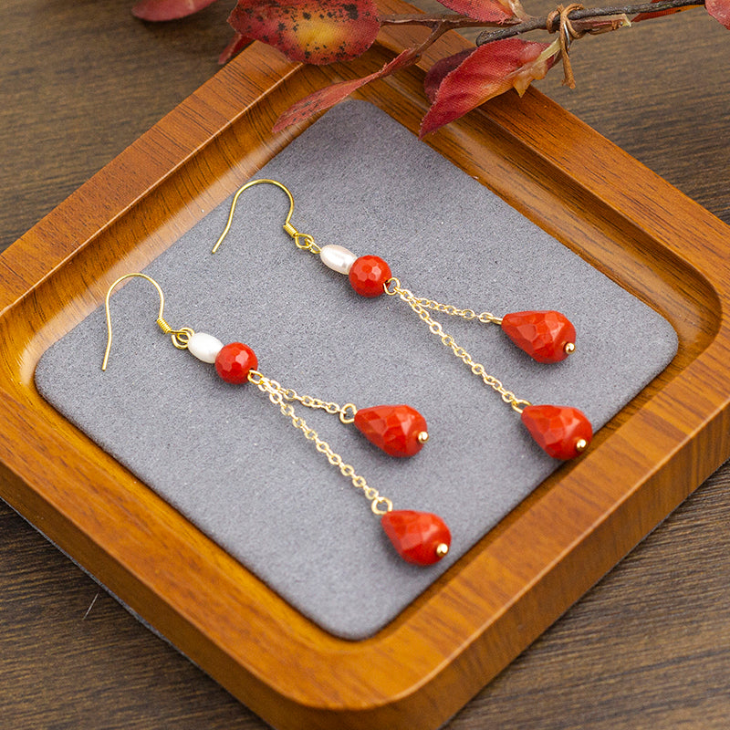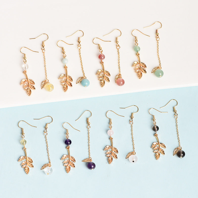 Natural crystal round beads, fallen leaves, colorful earrings, creative, simple and elegant handmade earrings $2.00