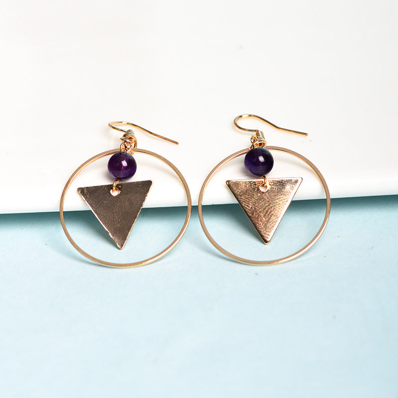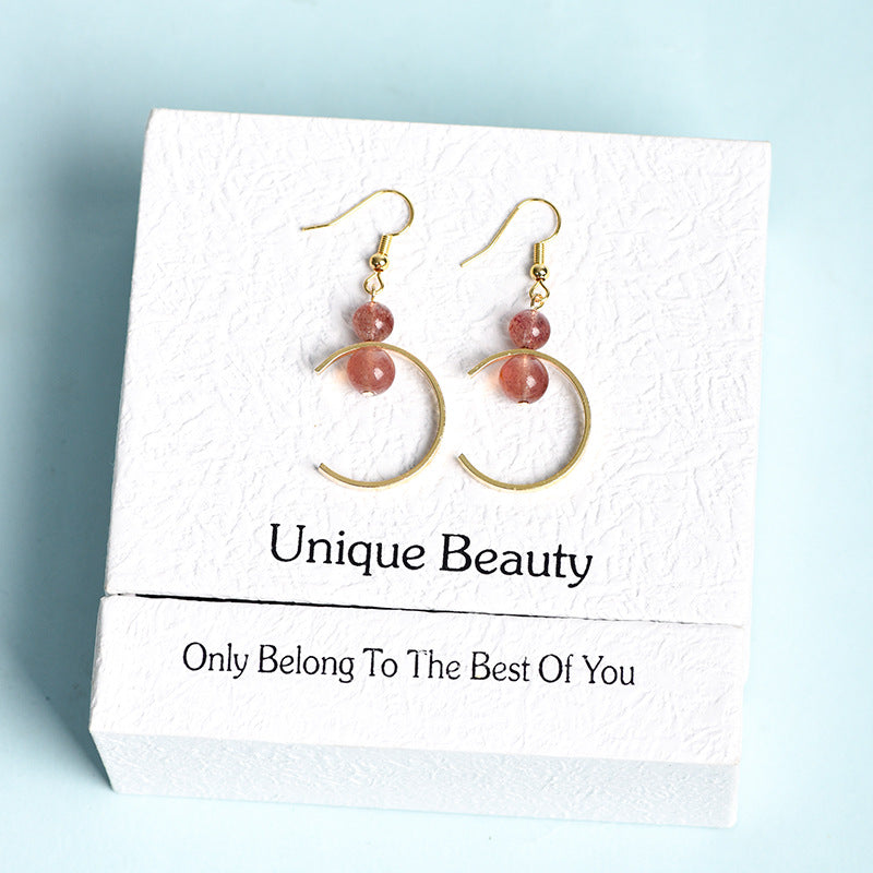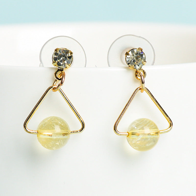 Natural crystal round bead square shaped earrings, creative, simple and elegant handmade earrings $2.00