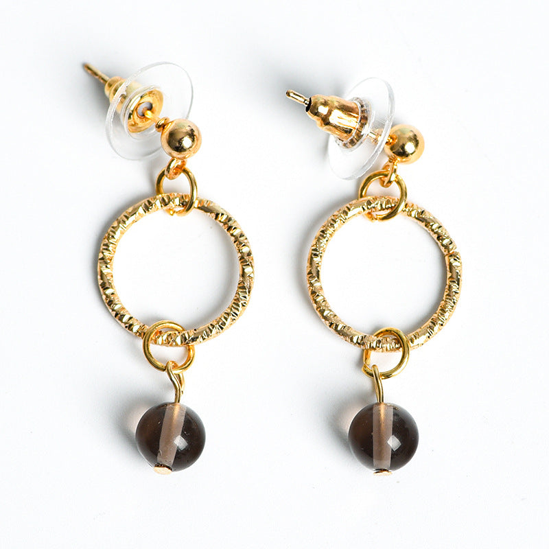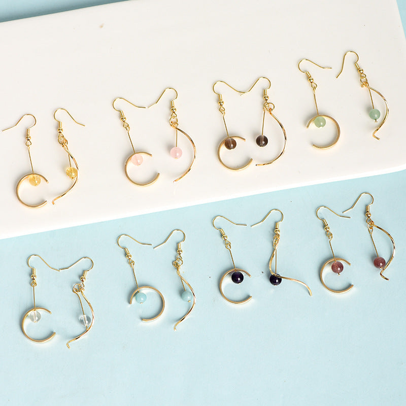 Natural crystal raw stone earrings, cute half-hole round bead earrings, temperament, personality and sweet earrings $2.00