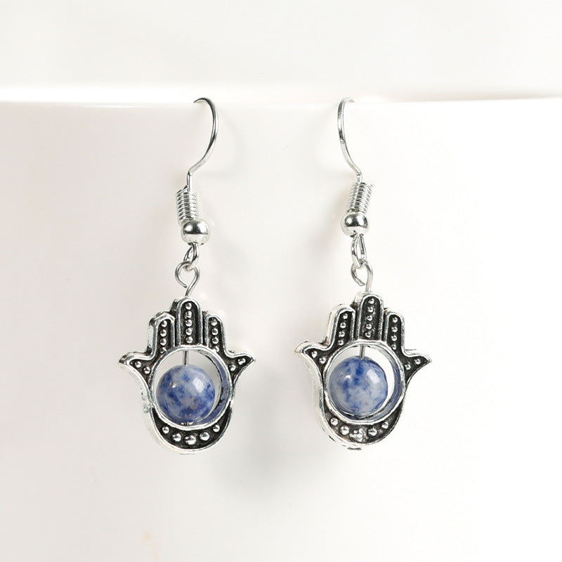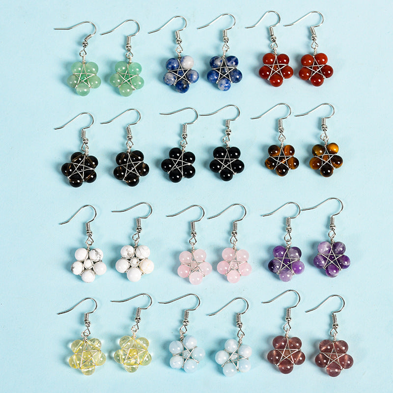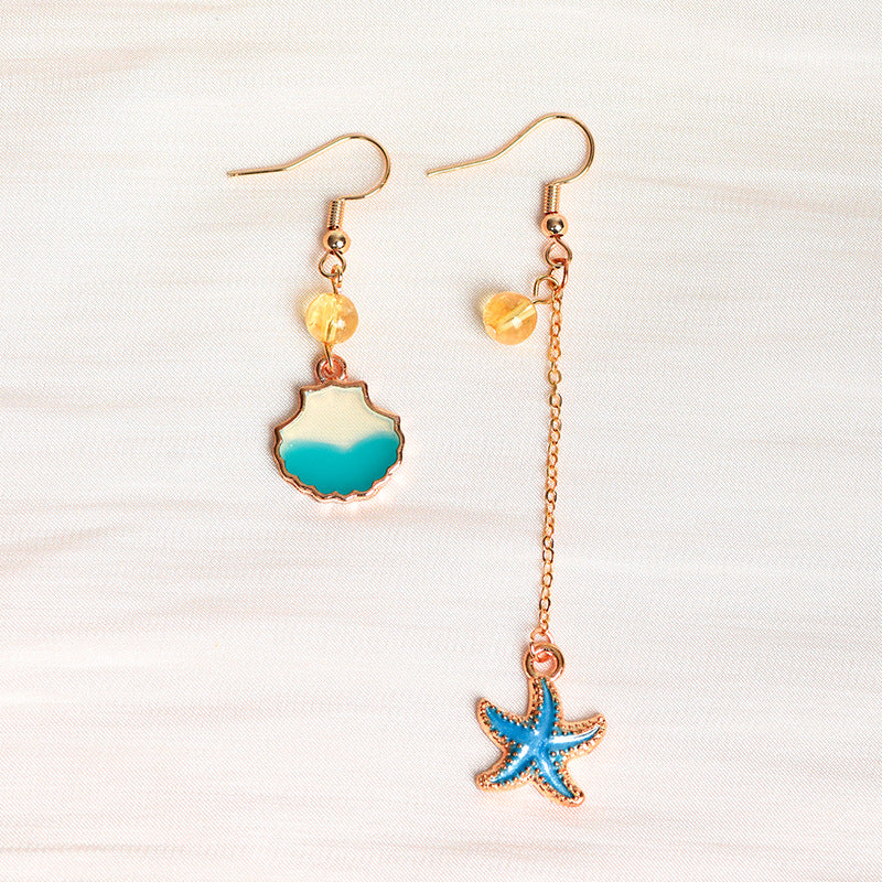 Natural crystal round beads blue starfish earrings creative simple and elegant handmade earrings $2.00