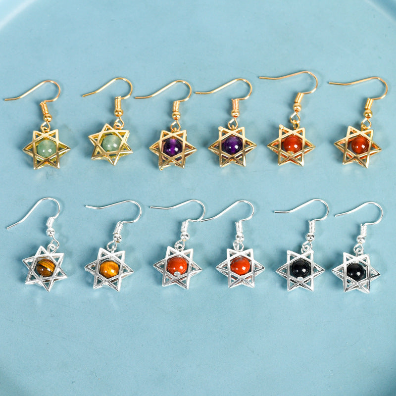 Natural crystal raw stone earrings, cute six-pointed star earrings, temperament, personality and sweet earrings $2.00