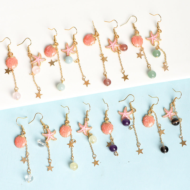 Natural crystal round beads and starfish earrings, creative, simple and elegant handmade earrings $2.00