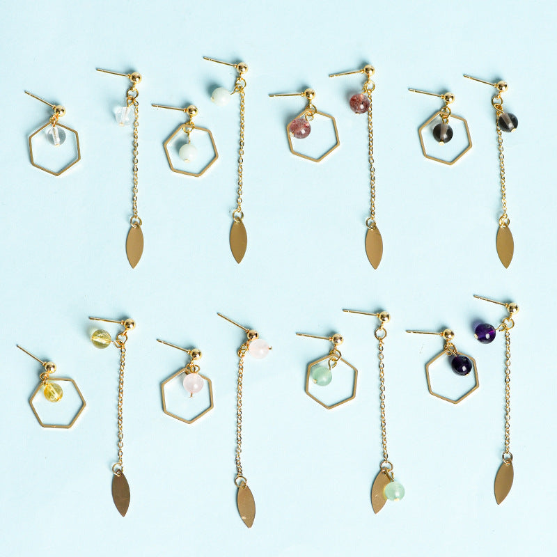Natural crystal raw stone earrings, cute crystal hexagonal prism earrings, temperament, personality and sweet earrings $2.00