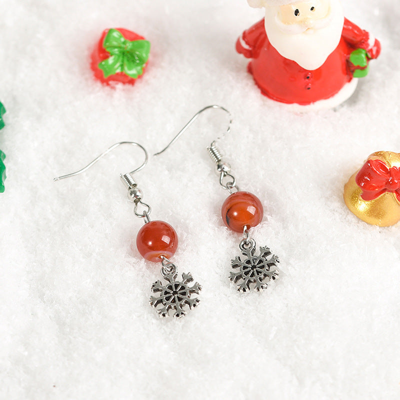 Natural crystal gravel spherical snowman bead earrings, temperament, personality and sweet earrings $2.00