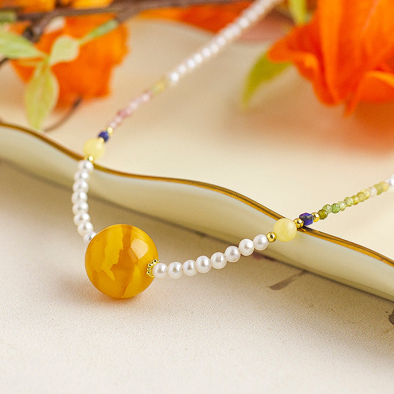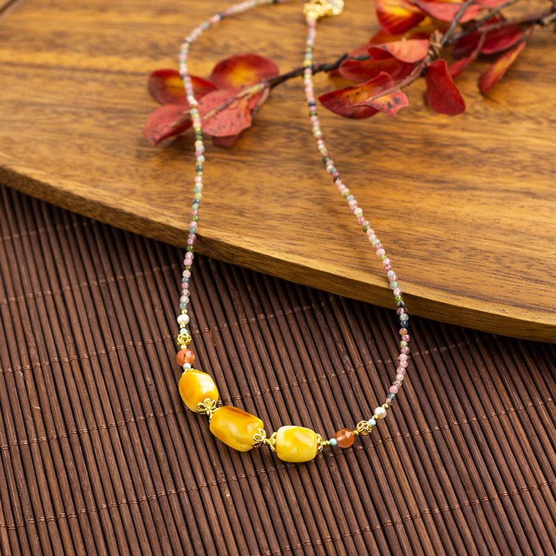 Natural mesh crystal pendant wrapped around silk pink white irregular stone necklace accessories $2.00