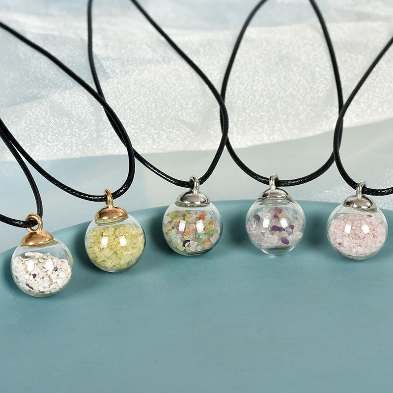 Hot selling new multi-color optional white crystal rose quartz simple personalized necklace round pendant $1.00