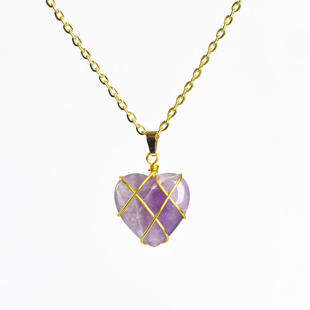 Natural crystal love wrapped wire hot-selling new multi-color optional rose quartz personalized necklace round pendant $2.00